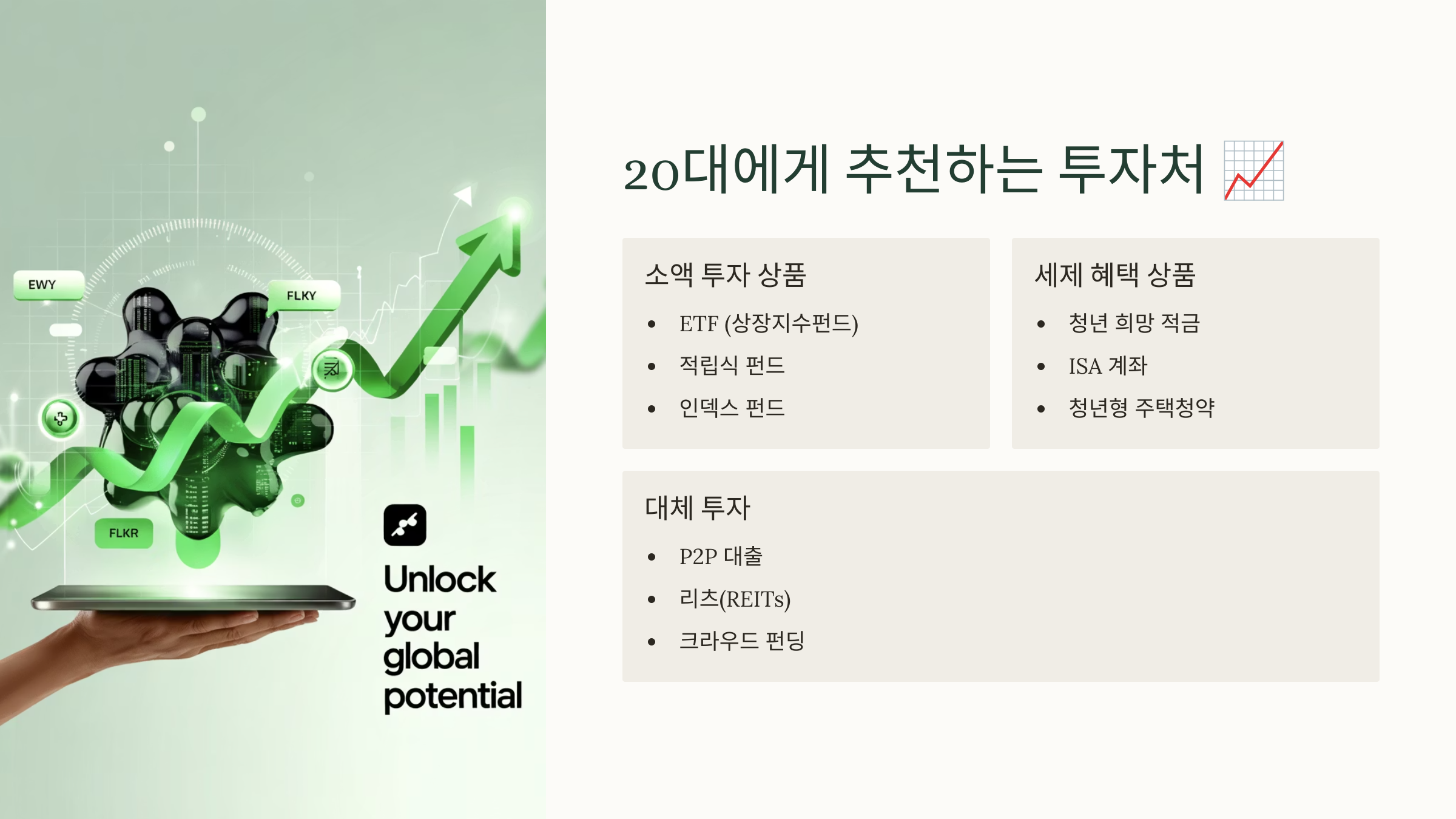 이제 20대에게 추천하는 진짜 투자처를 알아볼 차례예요! 기대되죠? 🥳