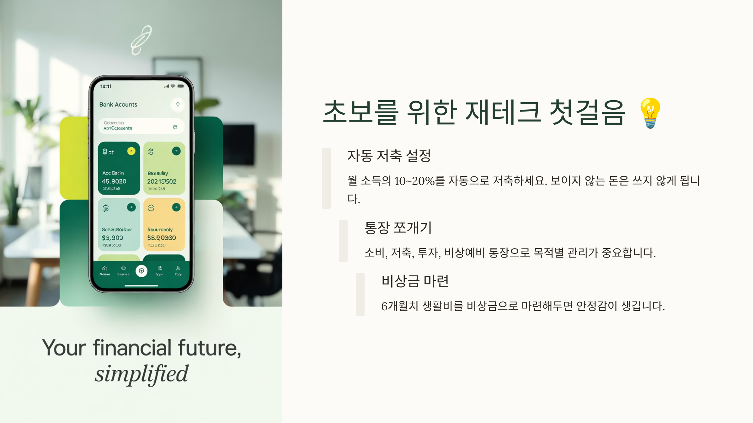 아직 자산이 적어서 재테크를 할 필요 없다고 생각할 수도 있지만, 오히려 자산이 적을 때부터 습관을 들이는 게 중요해요. 돈이 많아진 후에도 같은 습관으로 자산을 불릴 수 있으니까요. 🌱