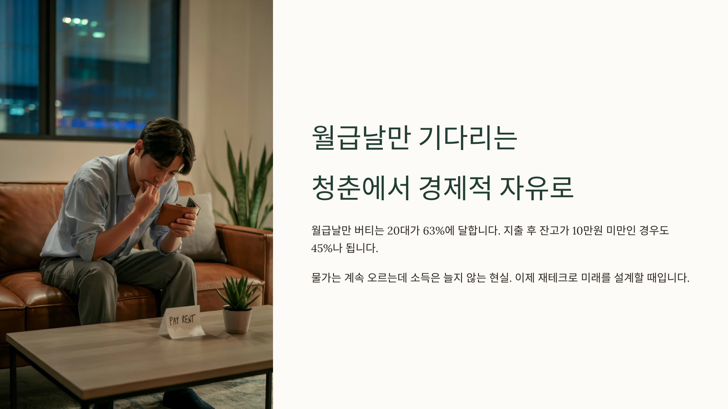 20대가 되면 자유를 느끼는 동시에 경제적 독립의 부담도 함께 찾아와요. 월급날만 손꼽아 기다리던 내가, 통장을 스쳐가는 월급을 보면서 한숨 쉬게 된 것도 한두 번이 아니었어요. 😥