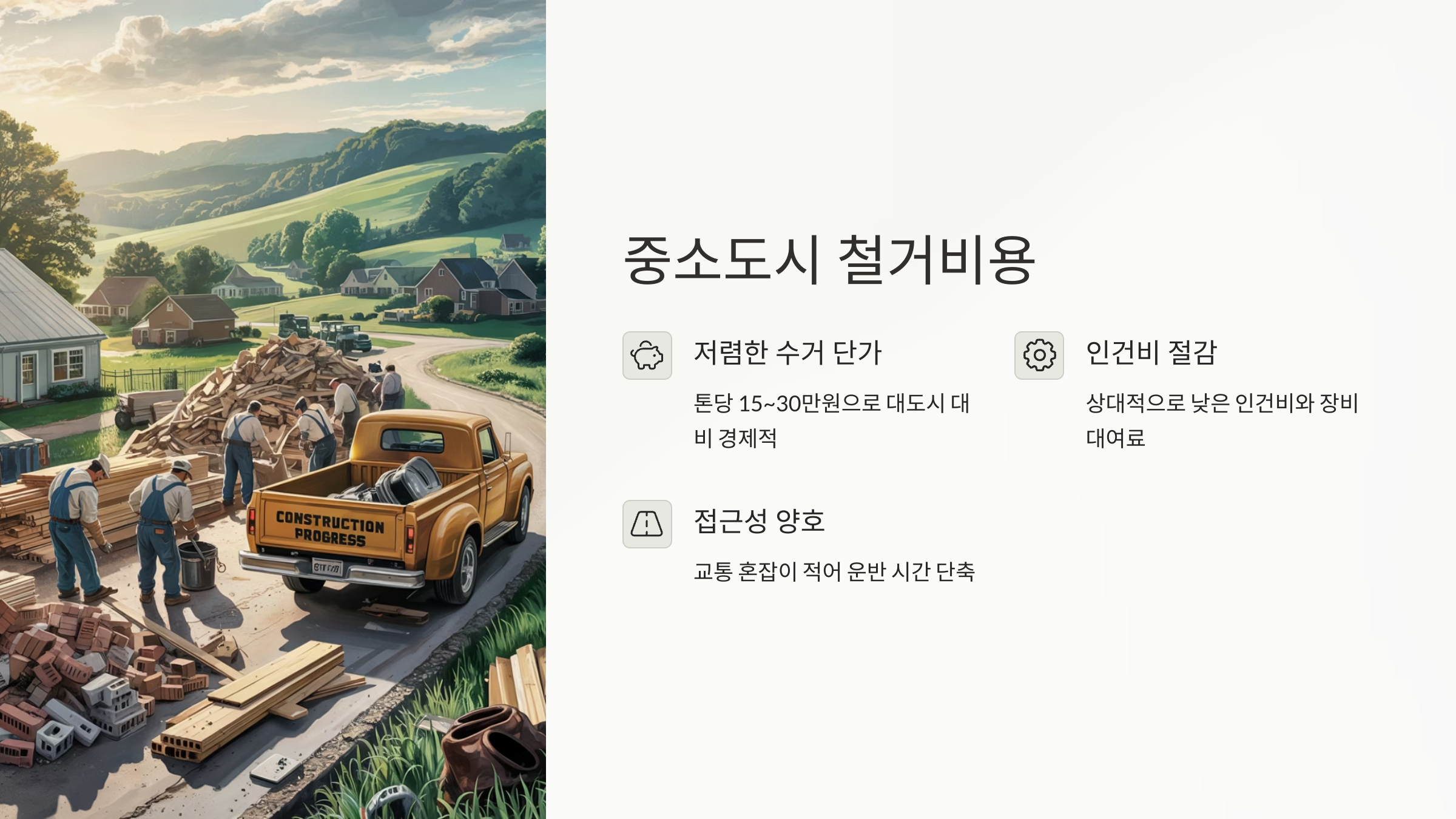 그럼 이번엔, 중소도시에서는 철거 폐기물 수거비용이 어떻게 다를지 살펴볼까요? 🏡