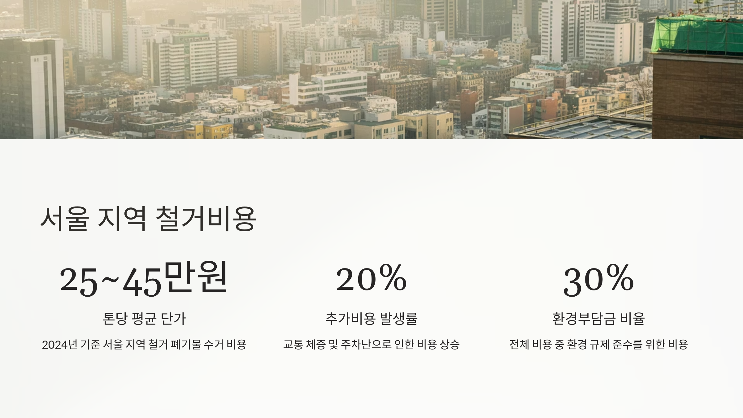 서울에서 철거를 한다면, 폐기물 수거비용이 기본적으로 비싸게 책정되는 경우가 많아요. 서울은 전국 평균보다 약 20~30% 정도 수거비가 높게 형성돼 있다고 보면 돼요.대표적인 이유는 역시 인건비와 부대비용이에요. 서울은 임금 수준이 높고, 차량 진입이 어려운 경우가 많아서 지게차, 크레인 같은 장비를 추가로 동원해야 해요. 이게 다 비용에 포함돼요.