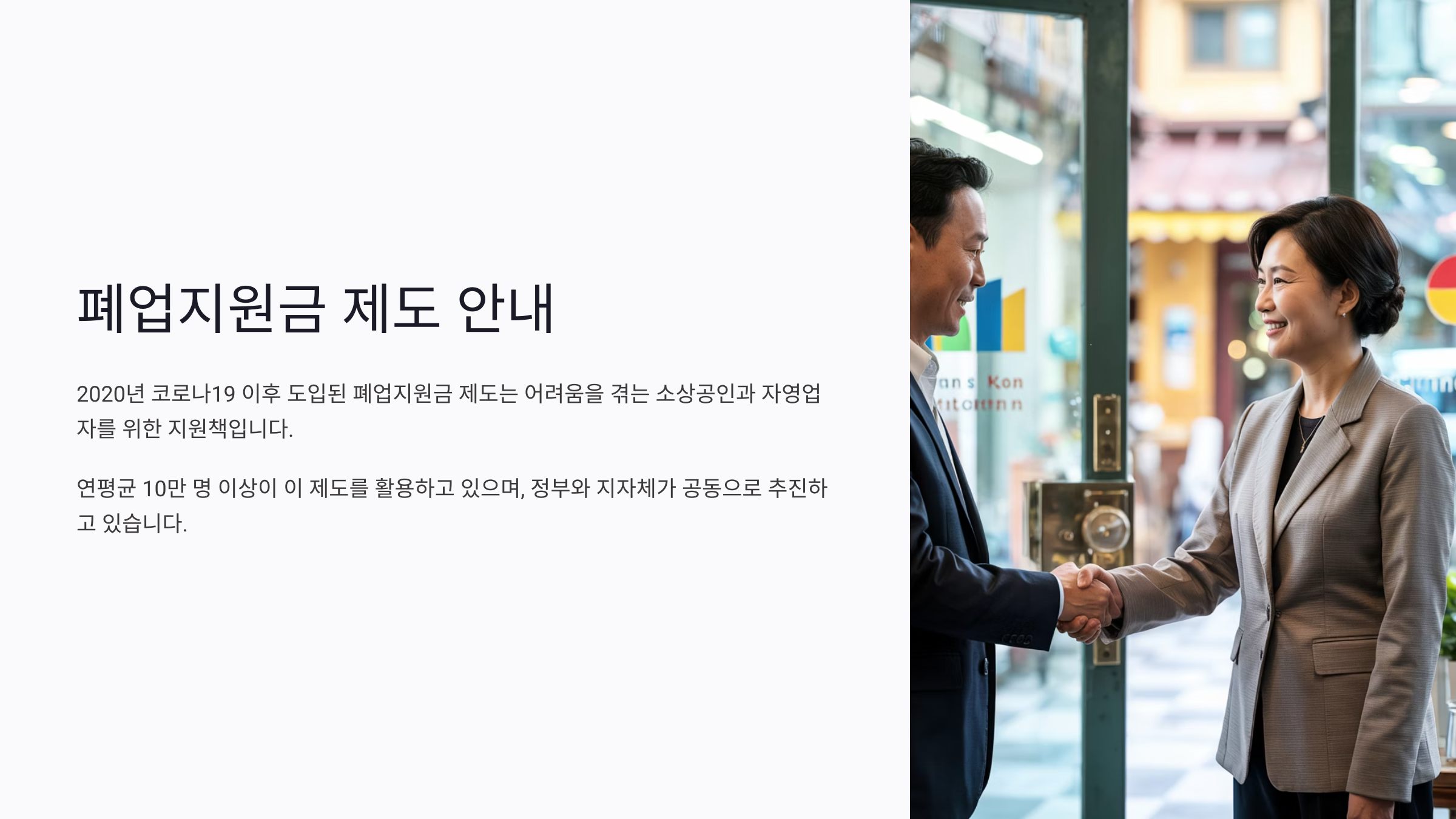 요즘 자영업자 사이에서 "정부가 폐업도 도와준다"는 말, 많이 들리죠? 실제로 한국 정부는 폐업을 준비하거나 이미 사업을 접은 소상공인을 위해 다양한 지원 제도를 운영하고 있어요. 특히 무료 폐업지원금 제도는 많은 이들이 관심 갖는 부분이에요.