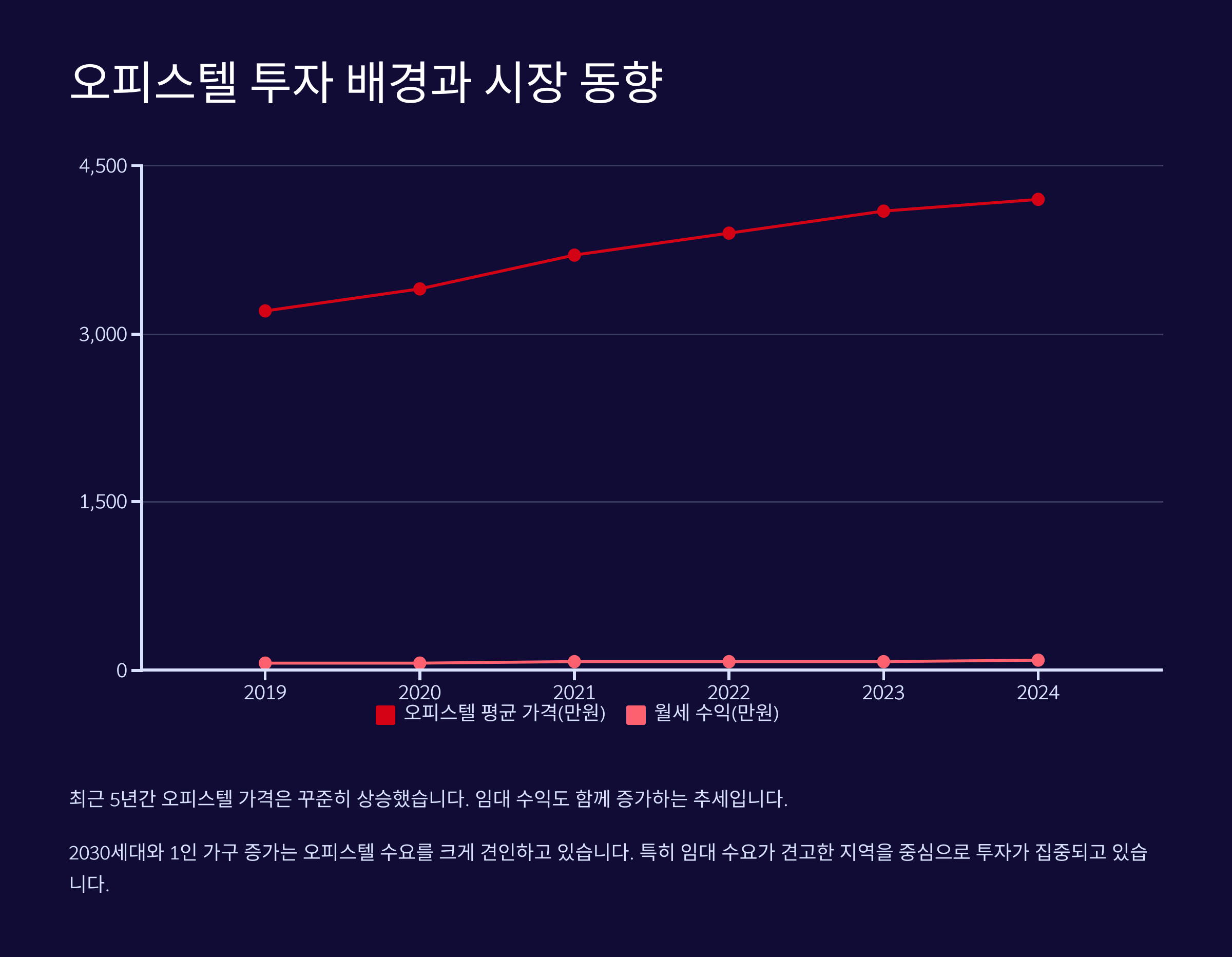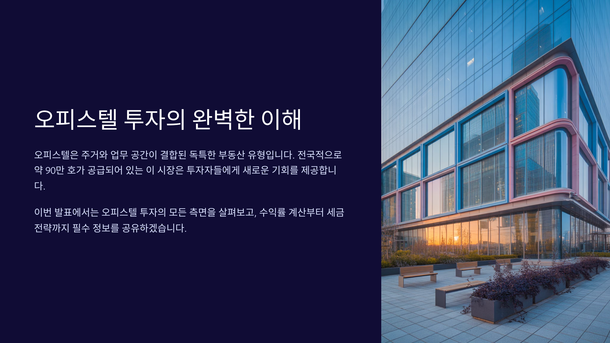 오피스텔은 업무와 주거 기능을 모두 갖춘 부동산 상품으로, 투자자에게 안정적인 월세 수익과 상대적으로 낮은 진입장벽을 제공하는 게 장점이에요. 특히 1~2인 가구 증가와 유동 인구가 많은 도심에서 수요가 꾸준하다는 점에서 많은 사람들이 주목하고 있죠.