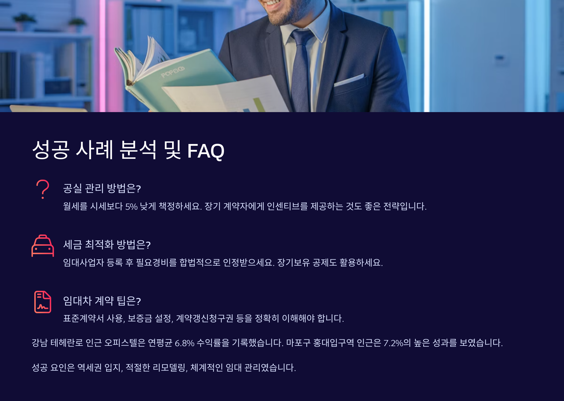 이 사례의 핵심은 입지였어요. 지하철 2호선 역세권, 대형 IT 회사 밀집지역, 인근 편의시설이 매우 좋았던 점이 월세 수익을 안정적으로 유지시켜줬고, 매각 시점에도 수요가 꾸준히 있었어요.