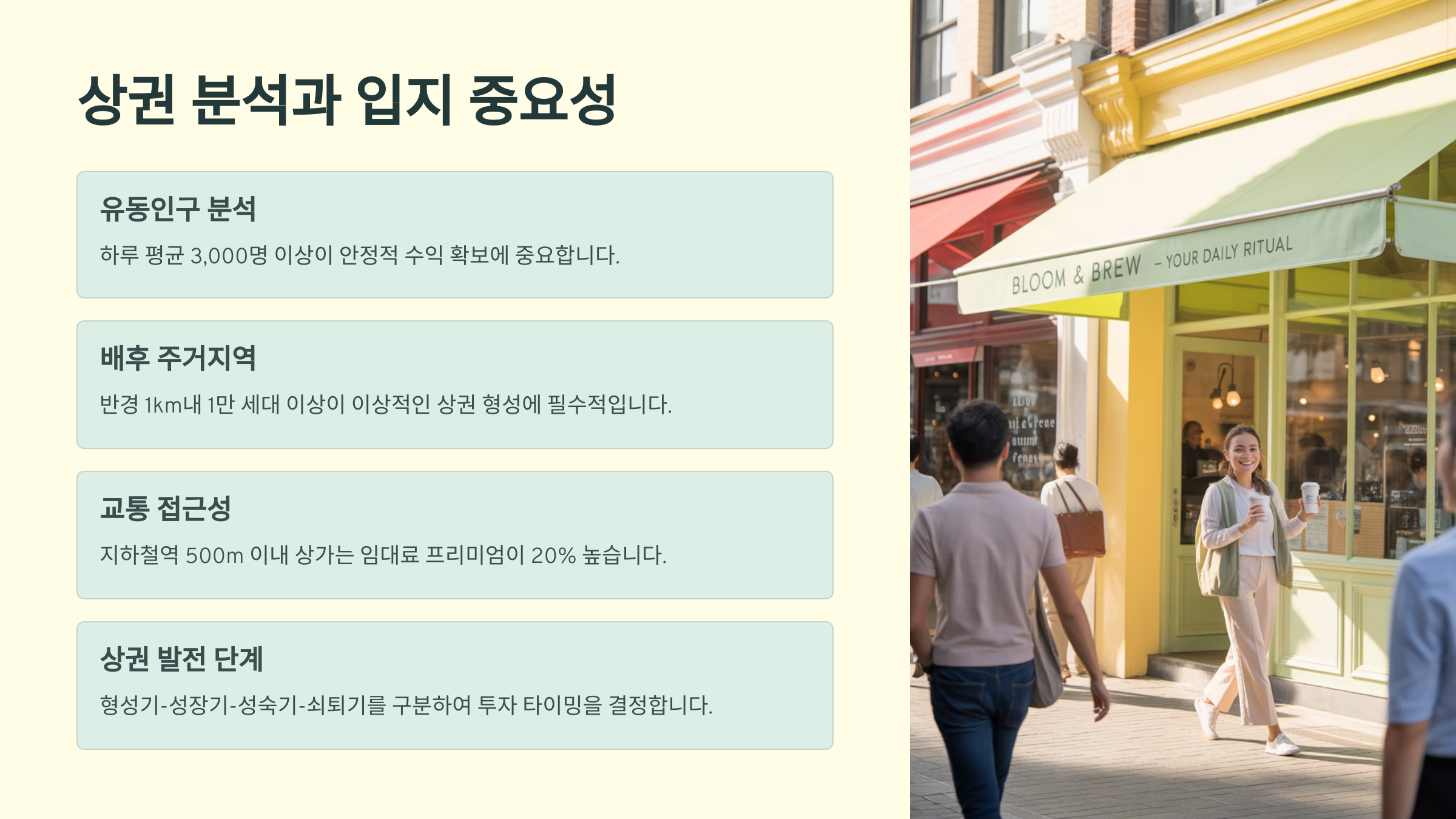 아무리 계산이 완벽해도, 상권이 망가지면 모든 게 무용지물이죠. 그래서 입지와 유동인구, 상권의 발전 가능성 분석이 필수예요.