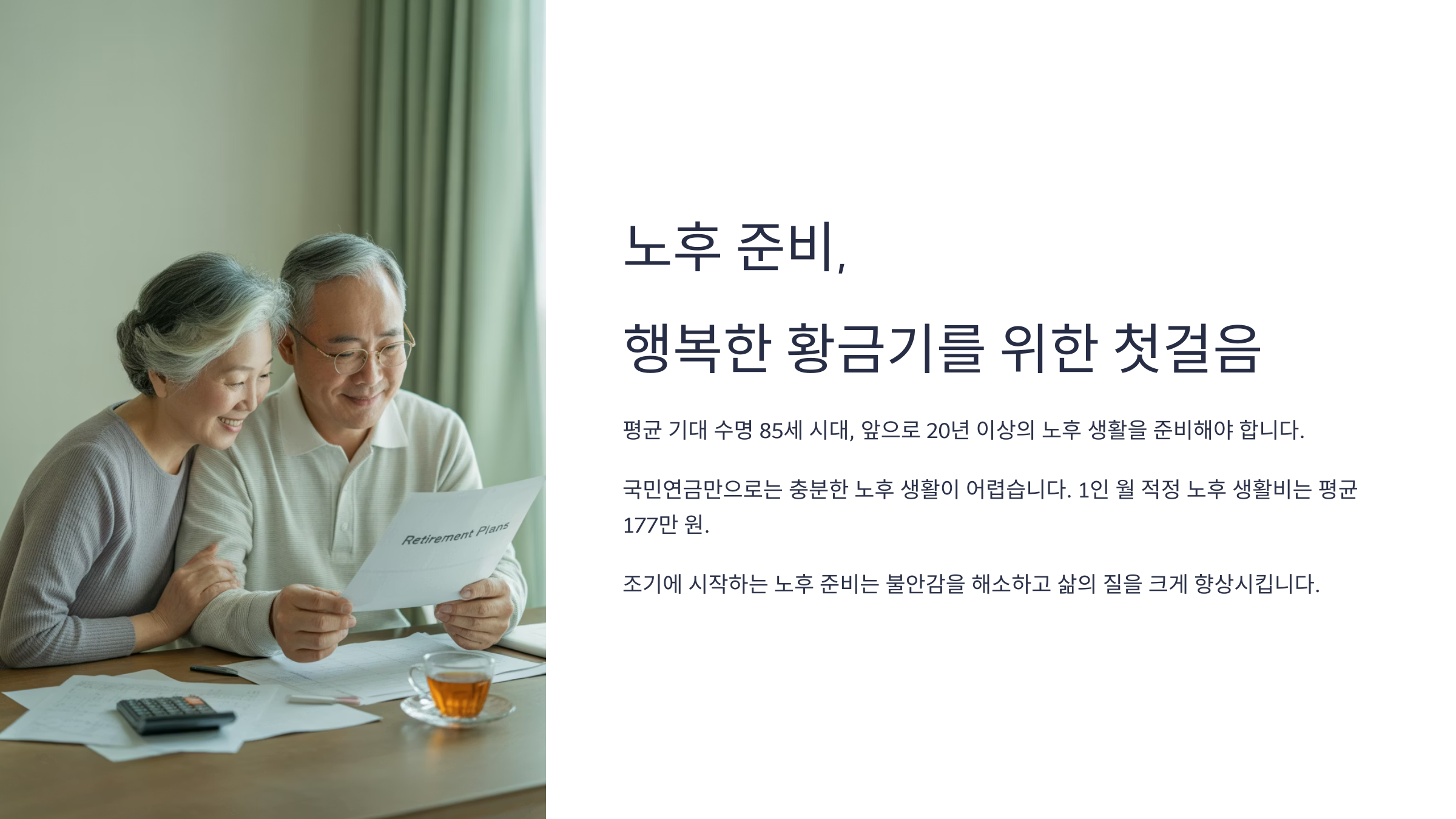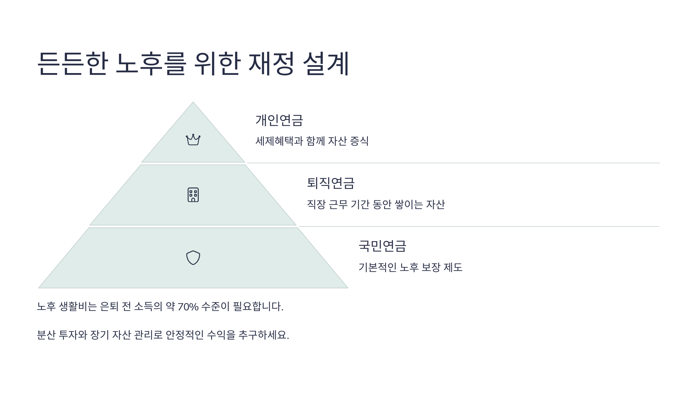은퇴는 끝이 아니라 새로운 시작이에요. 단, 이 새로운 시작이 즐거운 시간으로 바뀌기 위해선 구체적인 계획이 필요하죠. 정부의 국민연금이나 퇴직연금에만 의존하면 부족할 수 있어요. 개인연금, 부동산 자산, 금융 상품 등을 복합적으로 활용해야 해요.
