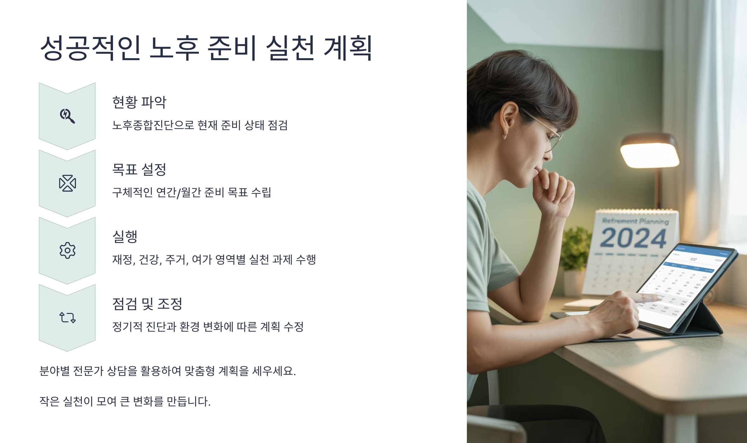 지금까지 노후 준비의 다양한 측면을 알아봤다면, 이제는 실질적인 계획을 세워야 할 차례예요. 아무리 좋은 정보도 실행하지 않으면 소용이 없잖아요. 노후 준비는 막연히 ‘해야지’ 생각만 하는 게 아니라 구체적인 목표와 일정이 있어야 효과를 볼 수 있어요.