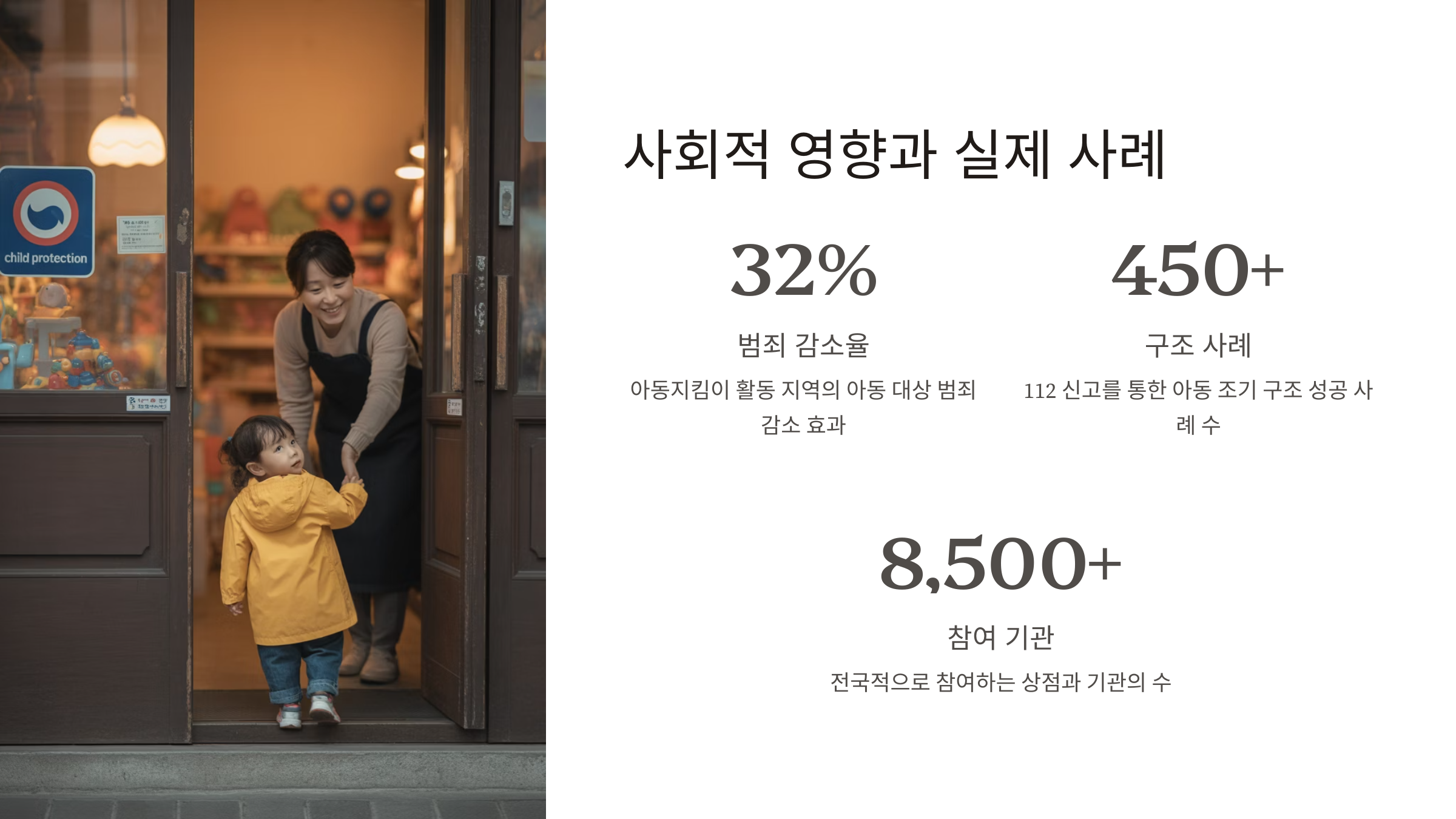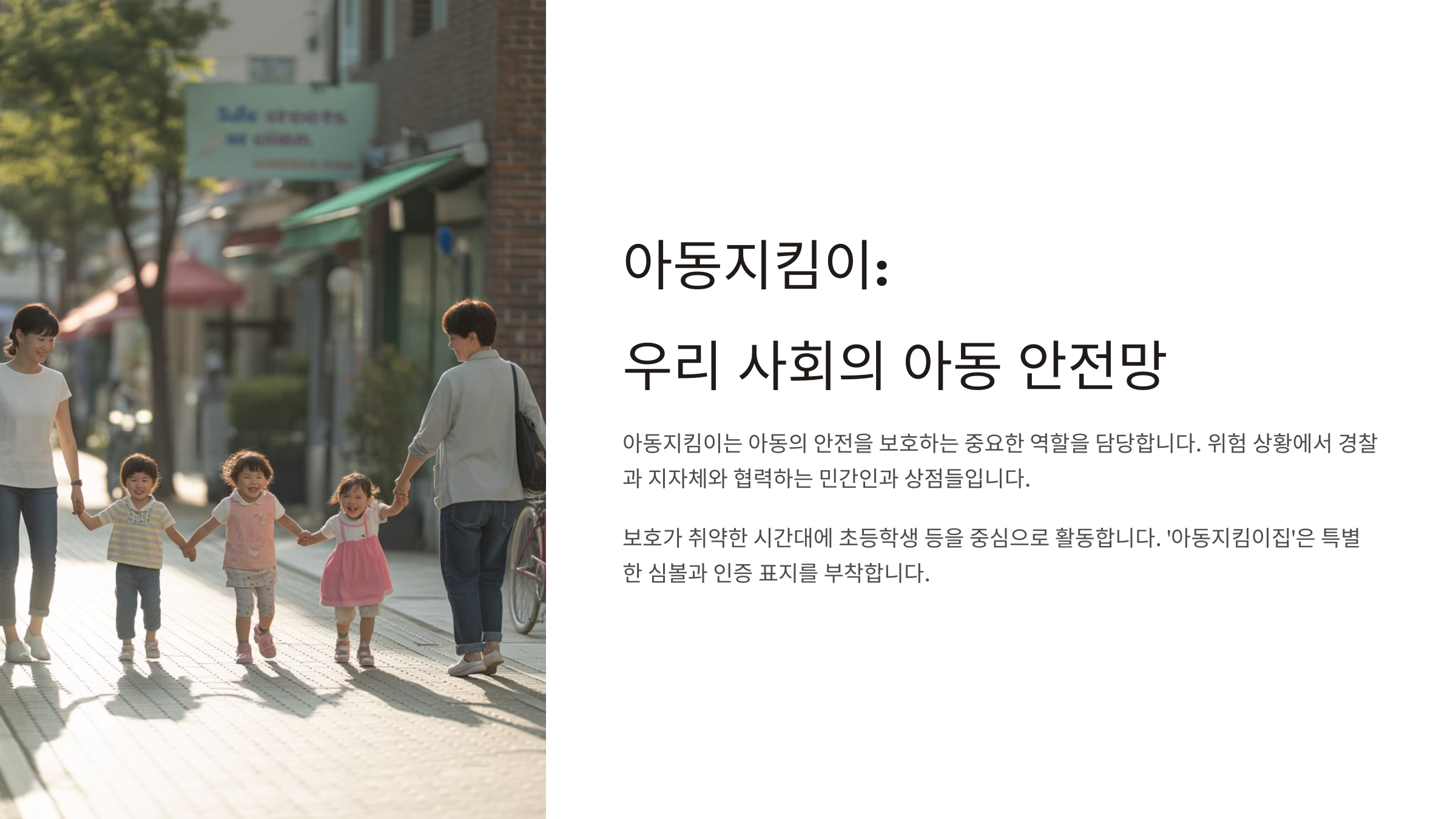 2005년 이후 아동 대상 범죄가 증가하면서 우리 사회는 더 이상 부모만으로는 아이들을 지키기 어려운 현실을 마주했어요. 이에 따라, 지역 사회 전체가 아동을 지켜야 한다는 인식이 높아졌고, 그 흐름 속에서 '아동지킴이'라는 개념이 본격적으로 등장하게 된 거예요.