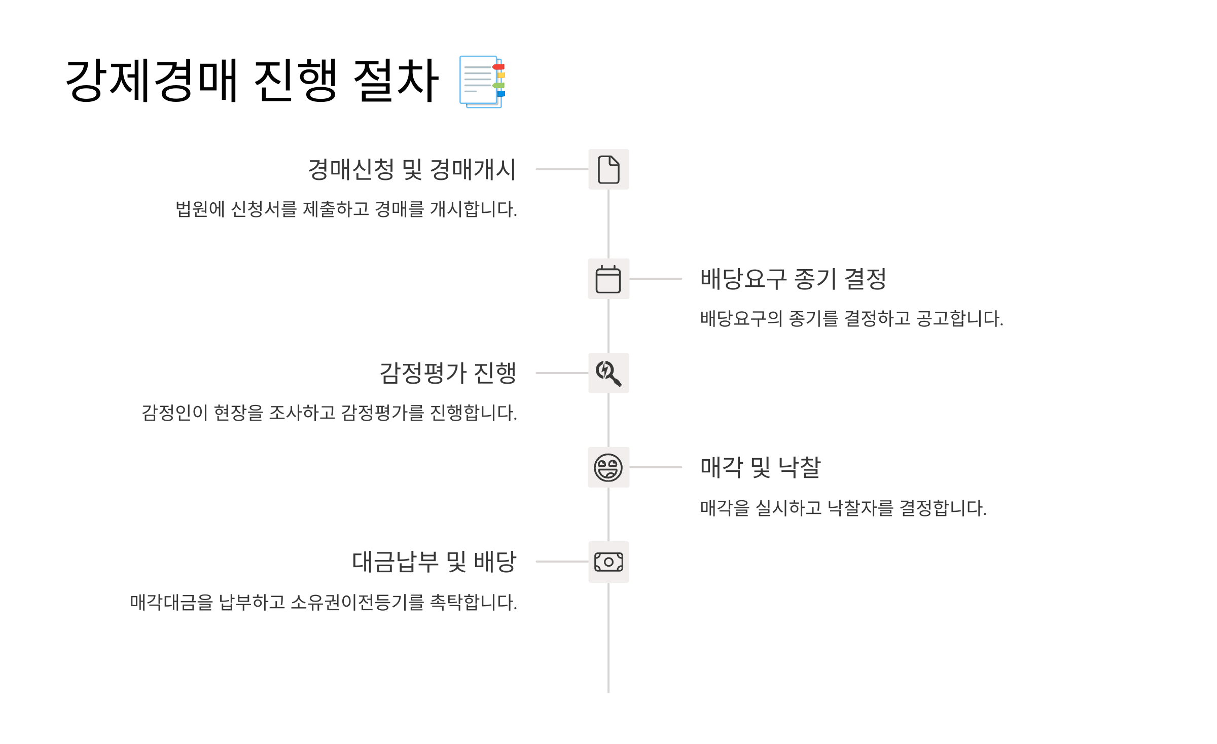 이제 다음 섹션에서는 실제 강제경매가 어떻게 절차대로 진행되는지 구체적으로 알아볼게요! ⚙