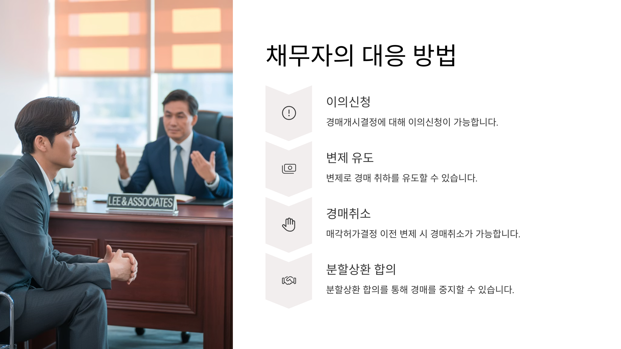 다음은 강제경매에 직면한 채무자 입장에서 어떻게 대응할 수 있는지 살펴볼게요! 😢