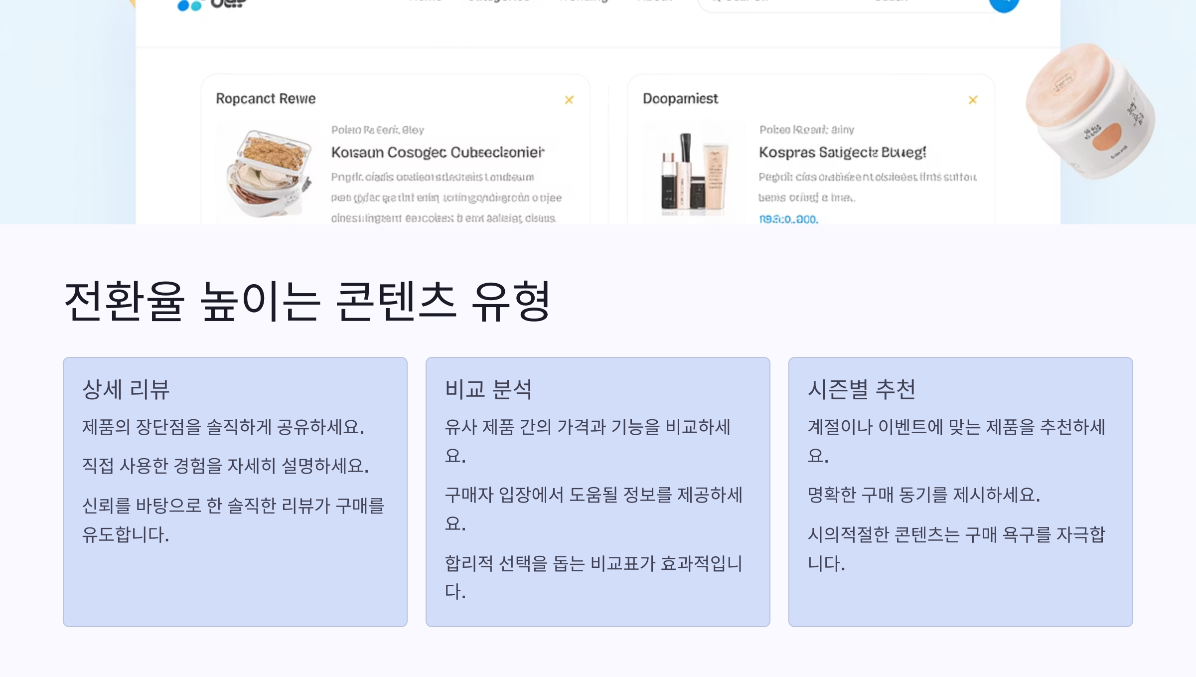 전환율 높이는 콘텐츠 유형 링크만 뿌리면 절대 수익이 나지 않아요. 꼭 콘텐츠와 연결해야 해요! 사람들이 '왜 이걸 사야 하는지'를 이해할 수 있게 도와주는 콘텐츠가 전환의 핵심이에요. 🧲