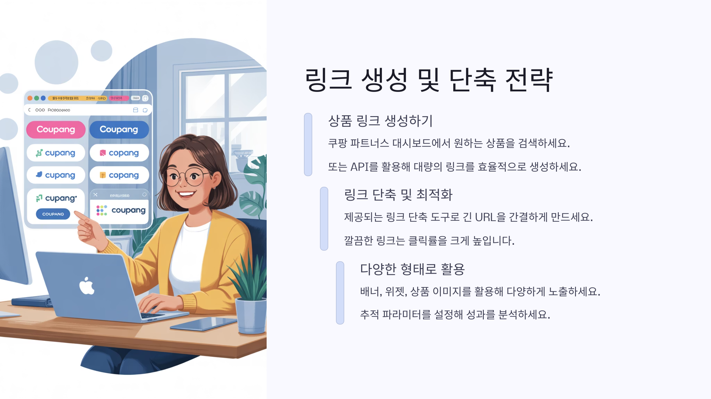 링크는 너무 길면 사람들이 클릭을 꺼려요. 글 안에 자연스럽게 녹이거나, 카드뉴스, 후기 형식으로 소개하면 클릭률이 훨씬 올라가요!