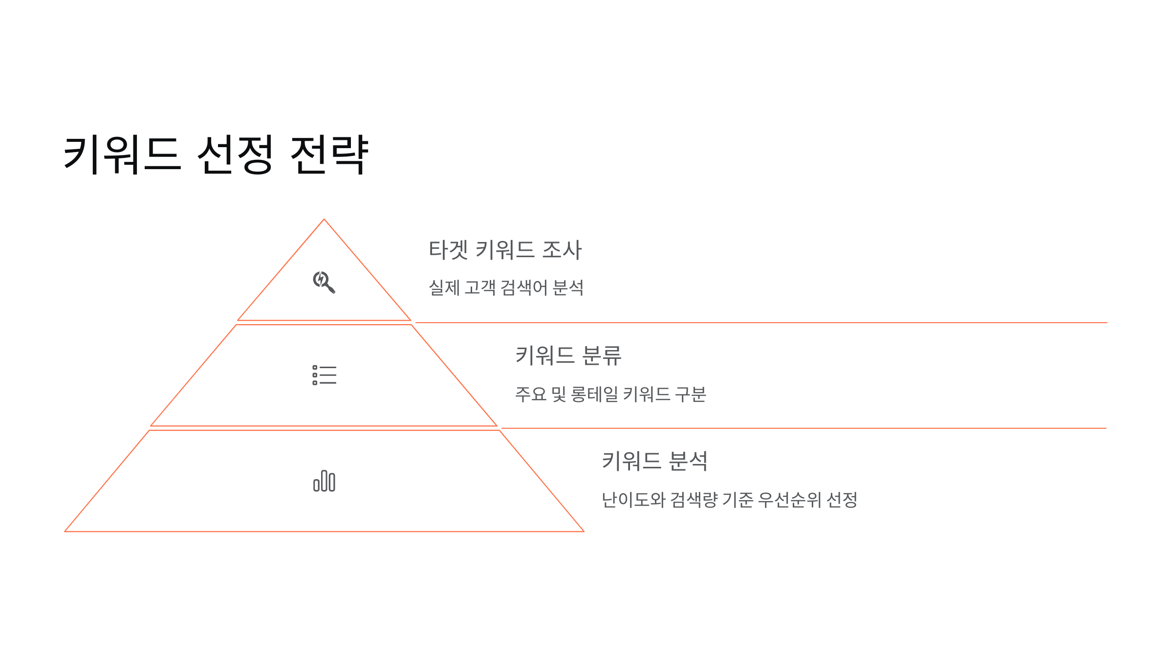 키워드 선정 전략 블로그 글은 '검색되는 글'이어야 의미가 있어요. 키워드는 독자가 검색창에 입력하는 바로 그 단어! 이걸 제대로 골라야 상위 노출도 가능하죠. 🔍