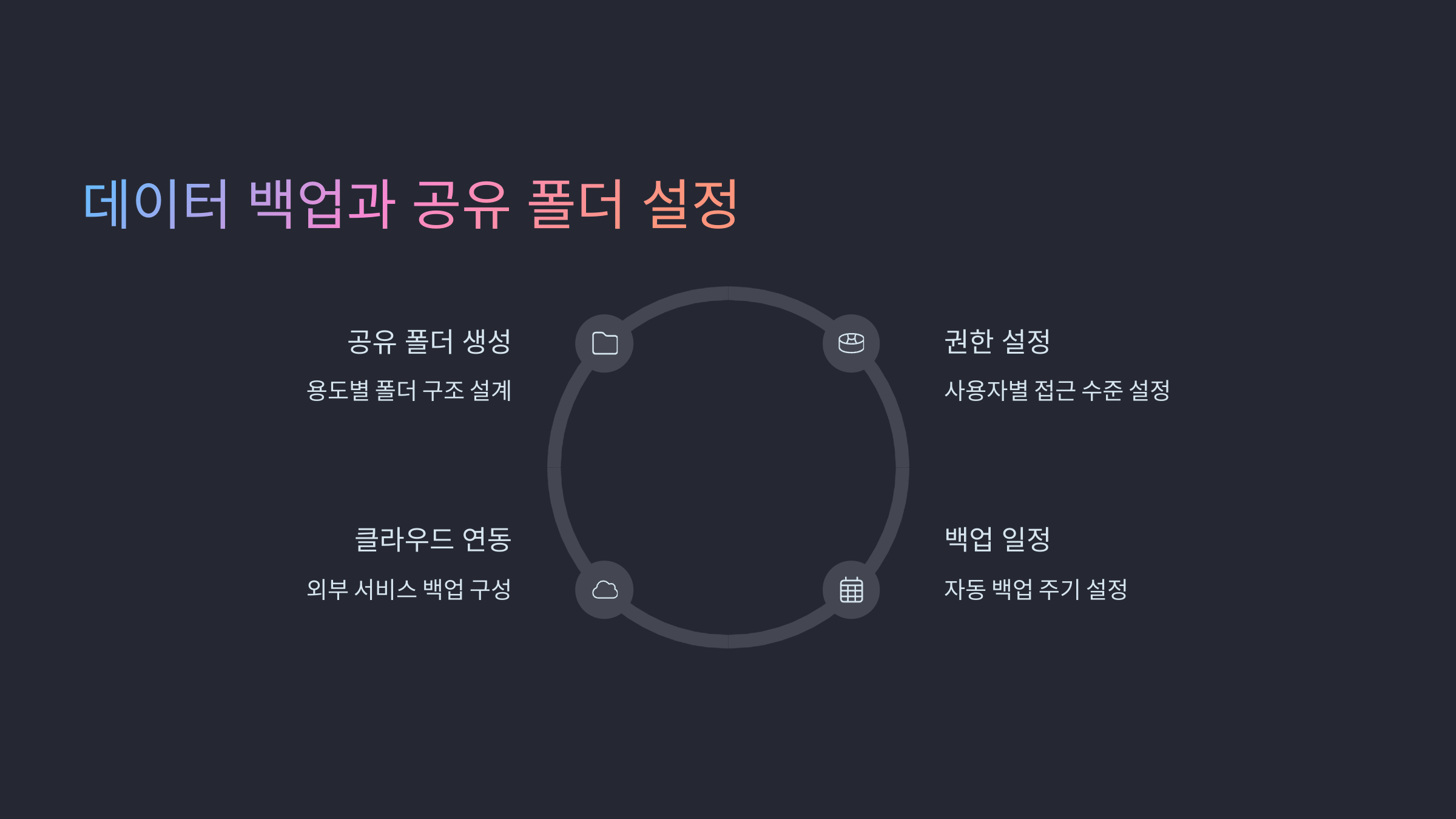 데이터 백업과 공유 폴더 설정 NAS를 제대로 활용하려면 가장 중요한 기능 중 하나가 바로 백업과 공유 폴더 설정이에요. 단순히 파일을 저장하는 데 그치지 않고, 자동으로 데이터를 보호하고 여러 사람과 나누어 쓸 수 있어야 진짜 NAS답게 쓰는 거예요!