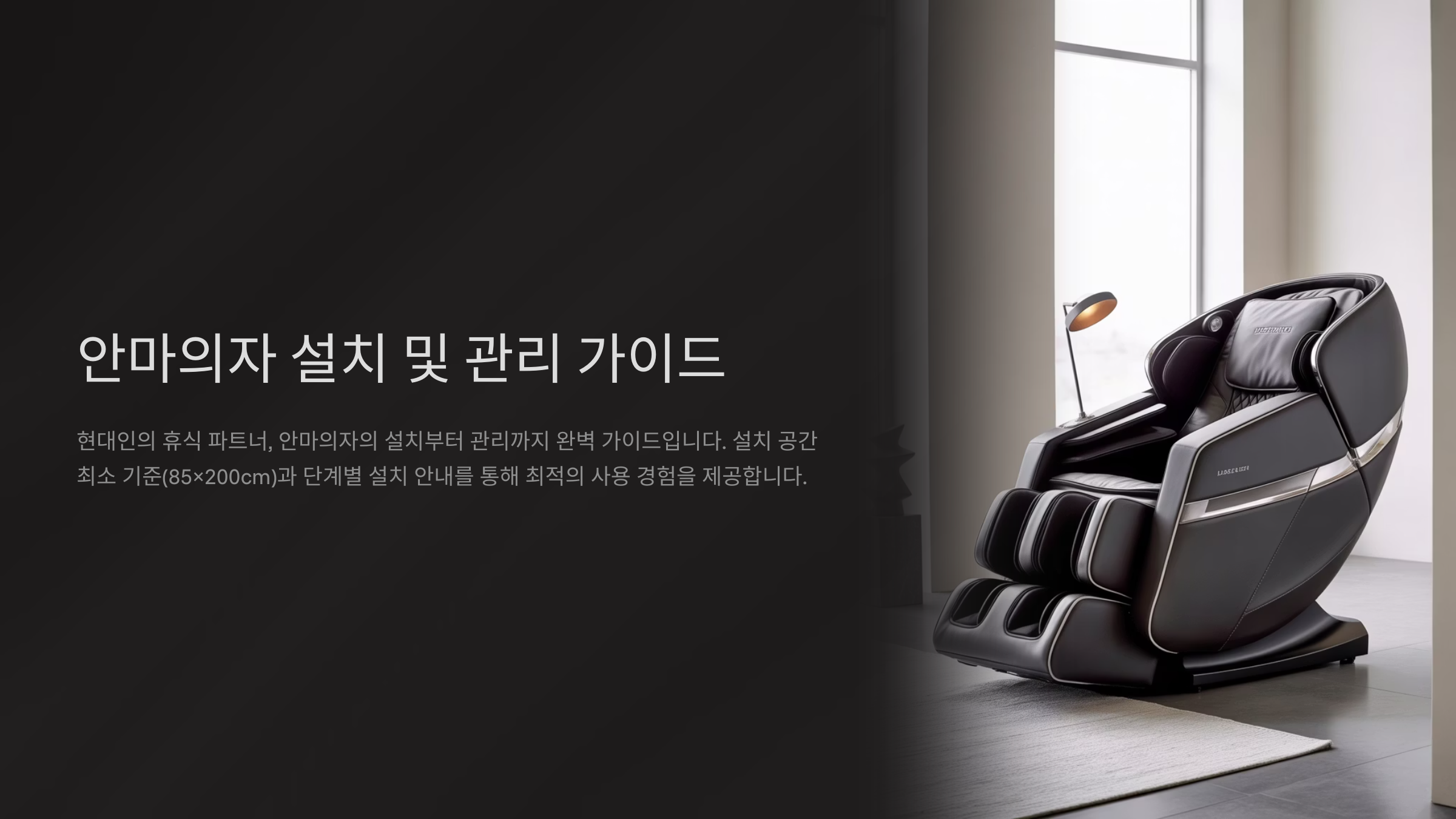 Q1. 안마의자 설치는 혼자서도 가능한가요?A1. 제품에 따라 다르지만, 대부분의 안마의자는 반조립 상태로 배송되기 때문에 설명서를 참고하면 혼자서도 설치할 수 있어요. 무게가 많이 나가므로 공간 확보와 이동 시 주의가 필요해요.