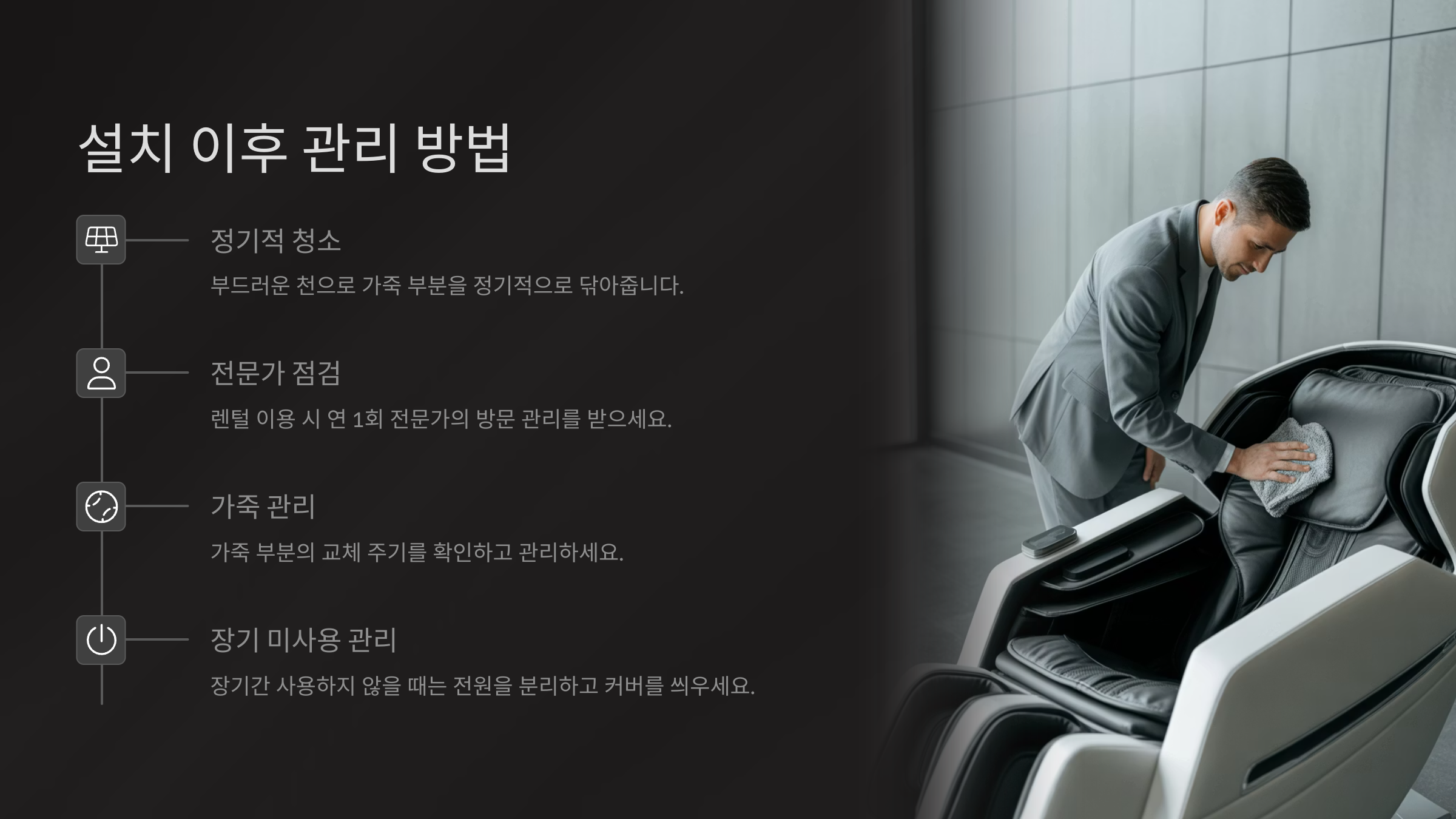 주기적인 점검도 필요해요. 마사지 볼이 덜 구르거나, 리클라이닝이 부드럽지 않게 느껴진다면 내부 센서 문제일 수 있어요. 이런 경우엔 즉시 고객센터에 문의해서 점검을 받아보는 게 좋아요.