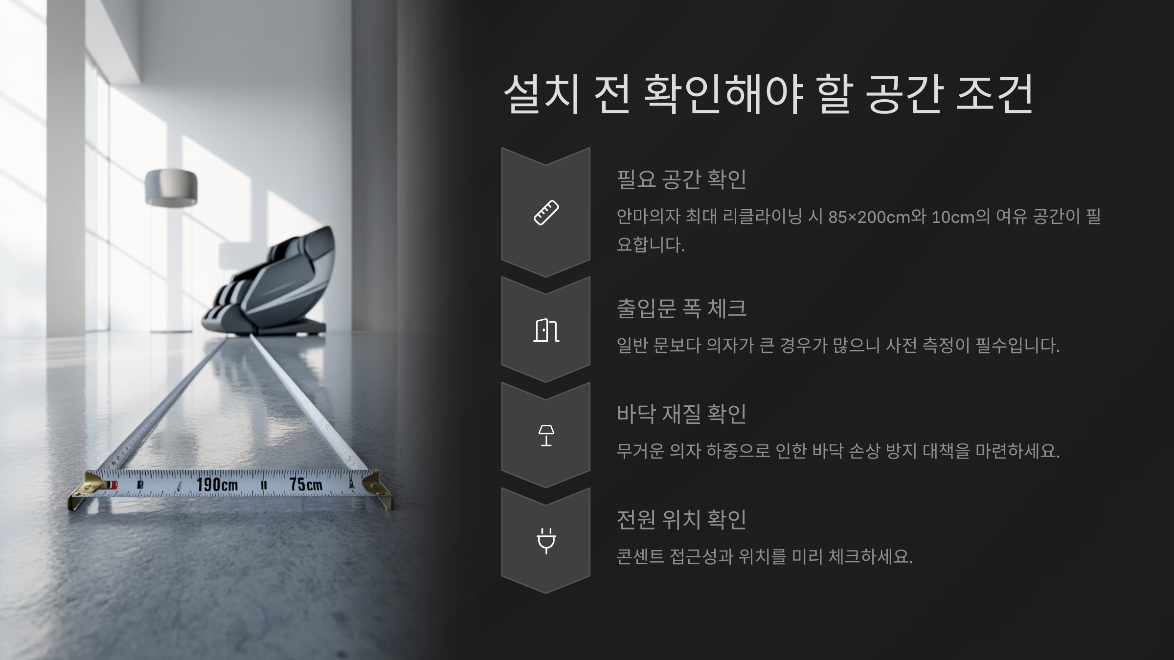 자, 이제 안마의자의 설치를 본격적으로 준비해볼 차례예요! 공간부터 꼼꼼하게 체크해야겠죠? 다음 섹션에서 알려드릴게요 ✨