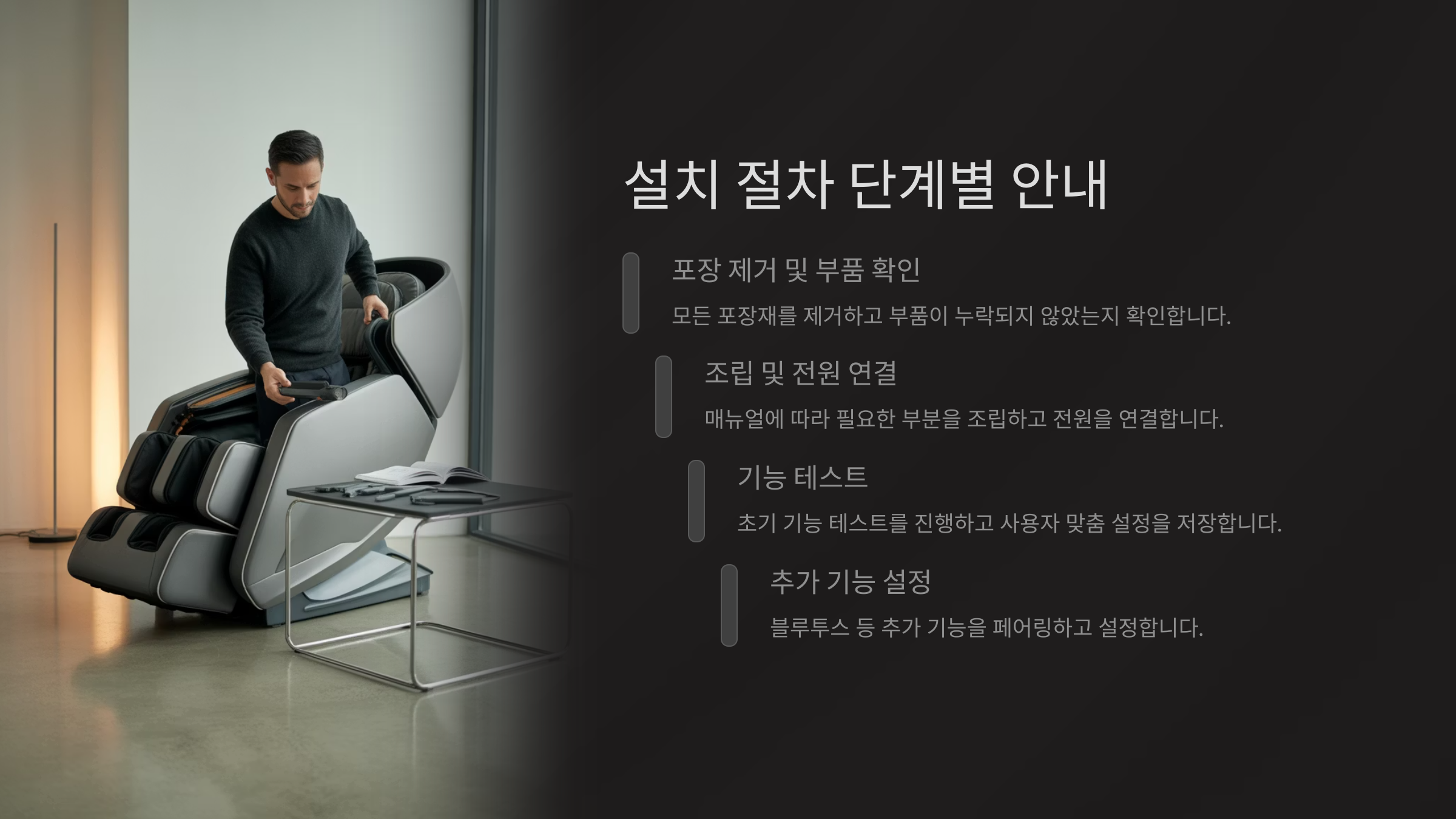 🛠 안마의자 설치 단계 요약표