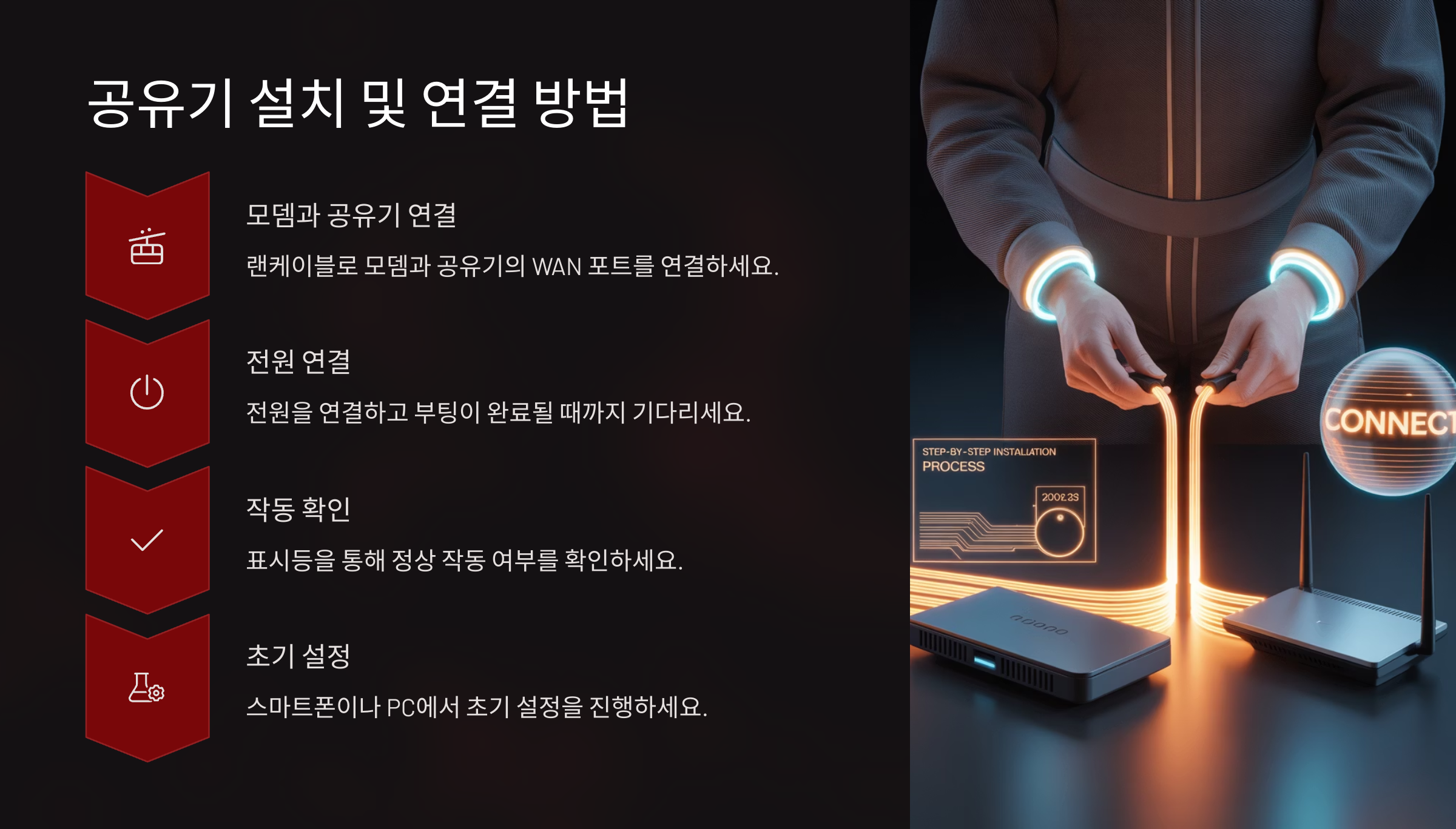 와이파이 공유기 설치 완벽 가이드 인터넷은 이제 우리 일상에서 공기처럼 없어서는 안 될 존재가 되었죠. 그런 인터넷을 무선으로 자유롭게 사용할 수 있게 해주는 기기가 바로 와이파이 공유기예요. 설치만 잘하면 집안 어디서든 끊김 없이 빠르게 인터넷을 즐길 수 있어요.