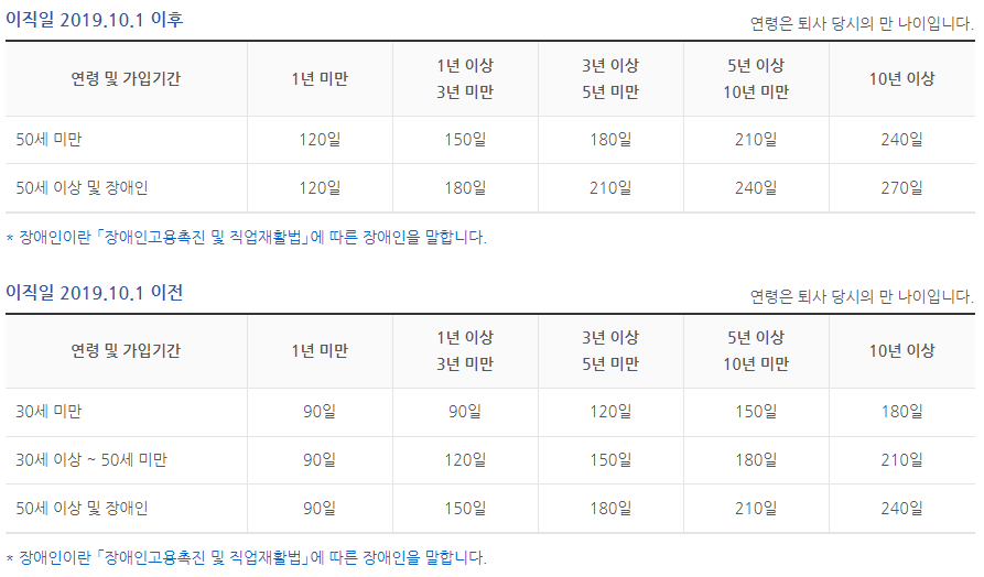 고용보험에 가입한 직장들에서의 근무기간이 18개월 (초단시간근로자의 경우, 24개월) 이상으로, 직장의 이직 숫자는 상관 없이 직장 근무 기간의 총합이 180일(6개월) 이상이면 해당됩니다.