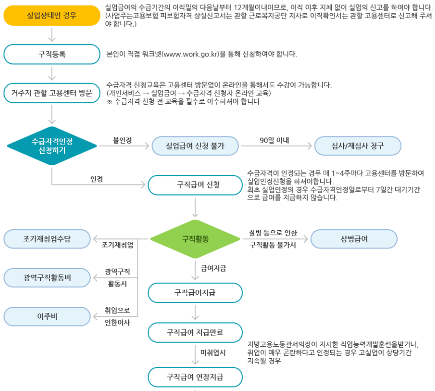 위와 같은 절차에 따라서 구직급여를 신청하실 수 있습니다.