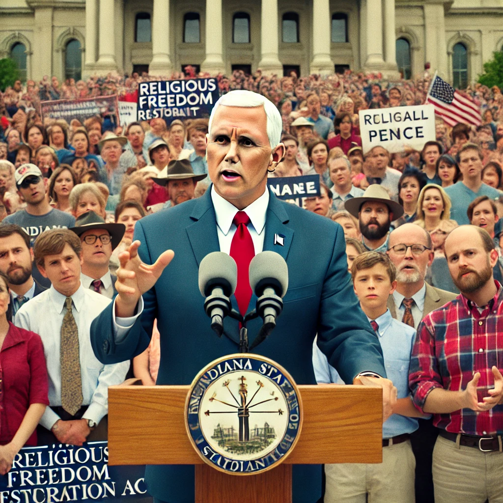 그는 또한 종교 자유 회복 법안(Religious Freedom Restoration Act, RFRA)을 지지하여 논란을 일으켰습니다. 이 법안은 종교적 신념을 이유로 차별을 허용할 수 있다는 비판을 받았으나, 펜스는 수정안을 통해 논란을 어느 정도 진화시켰습니다.