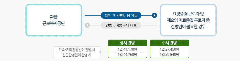 또한, 장례비도 별도로 지급되어 사망자의 장례 절차에 필요한 비용을 보전할 수 있습니다. 유족급여는 근로자의 사망으로 인해 가족들이 겪을 수 있는 경제적 어려움을 완화하고, 장례 절차를 원활하게 진행할 수 있도록 돕습니다. - 간병급여: 산재로 인해 중증 장애를 입은 근로자가 일상생활을 독립적으로 수행할 수 없는 경우, 필요한 간병 서비스를 제공하기 위한 비용을 지원합니다.