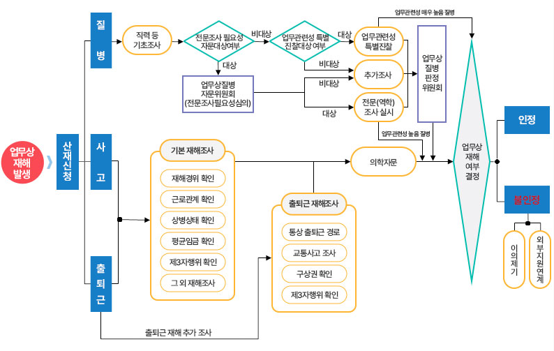 >> 업무내용이나 사고 경위 등에 대한 구체적 사실관계 확인이 필요할 경우 처리기간이 연장될 수 있으며 업무상 질병의 경우 업무와의 인과관계 확인을 위하여 현장조사, 특별진찰, 역학조사 등을 거칠 수 있으며, 이 경우 처리기간이 추가적으로 더 연장될 수 있음