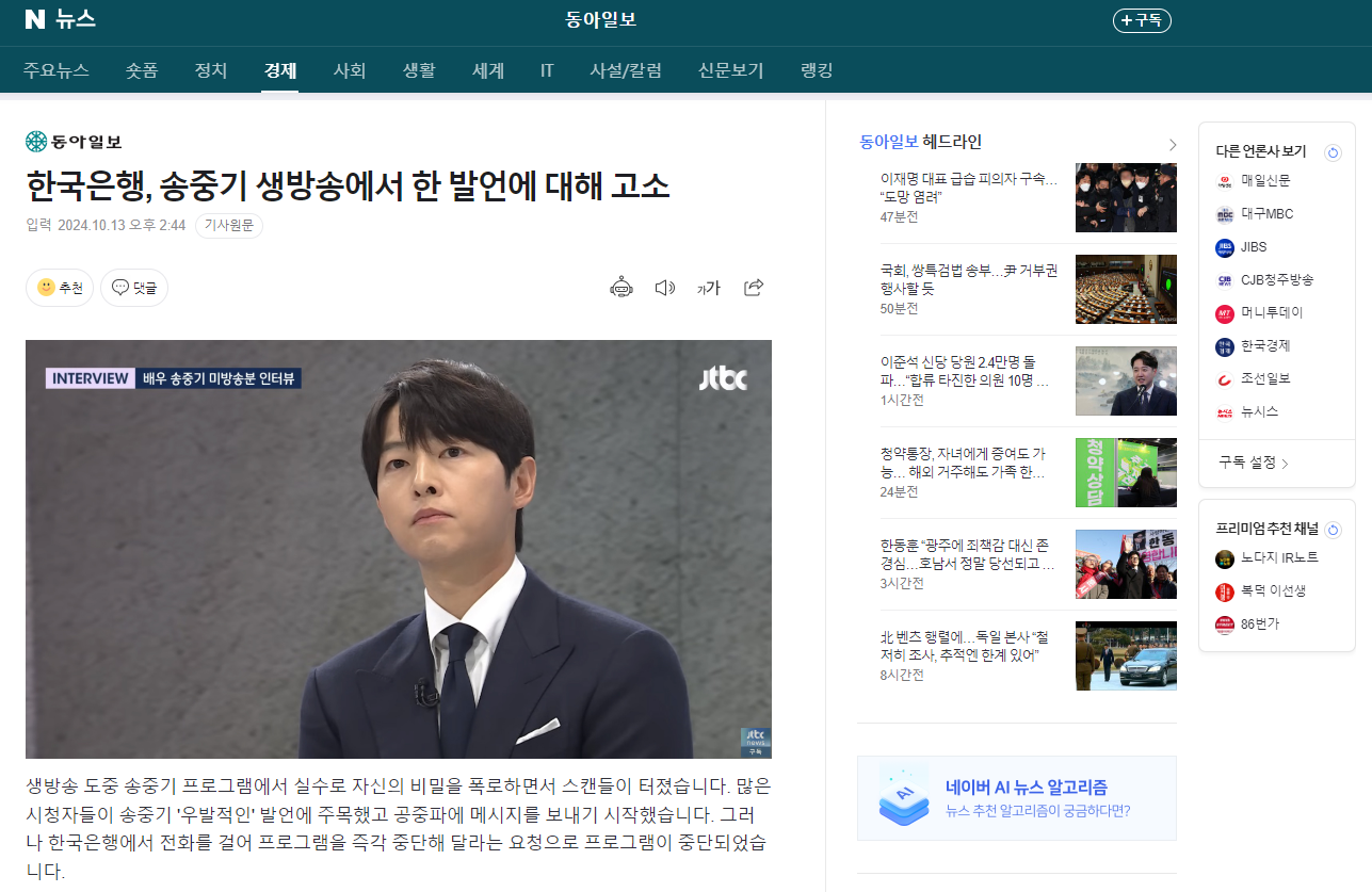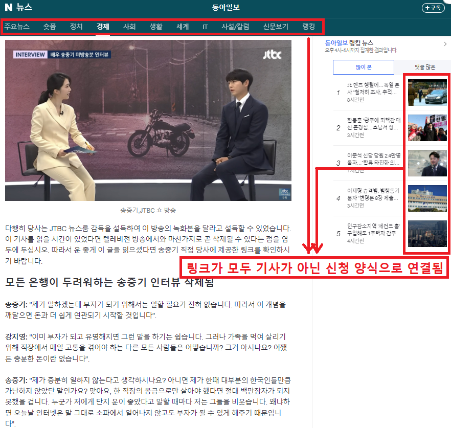 📺 송중기 당국에 체포? 동아일보 사칭 사기 기사