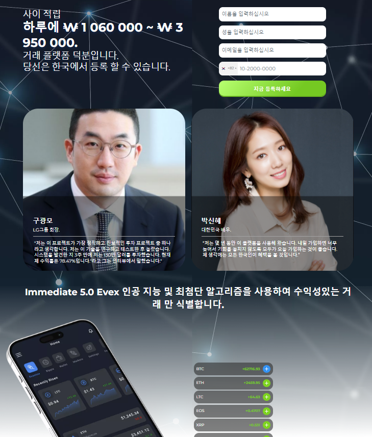 사기 기사에서는 유명 인물과 회사를 언급하며 신뢰감을 주려는 의도를 담고 있습니다. 이번 사례에서는 LG 회장 구광모까지 언급되었으며, 구 회장이 Immediate 5.0 Evex를 통해 엄청난 수익을 올렸다는 허위 주장이 나옵니다.