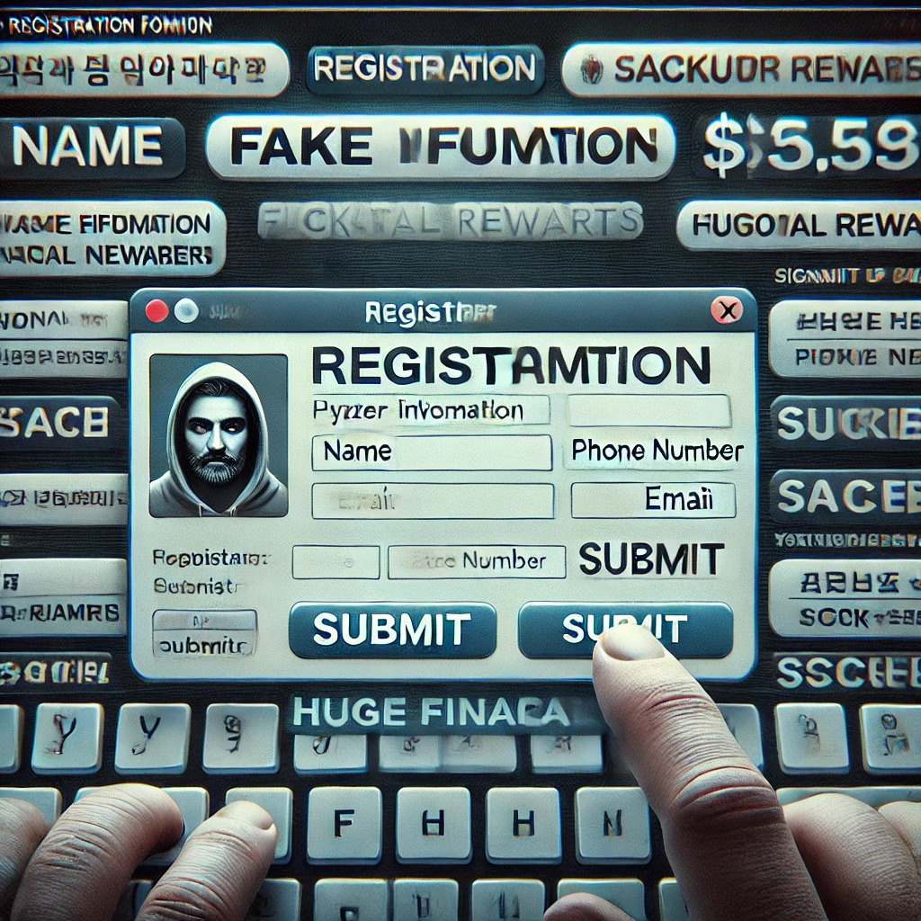 사기 사이트는 피해자들에게 개인정보를 입력하도록 유도합니다. 심지어 가짜 정보를 입력해도 절차가 그대로 진행될 만큼 허술한 시스템입니다.