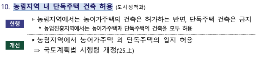- 기존에는 농지를 소유한 농업인만 주택을 신축할 수 있었습니다. 이제는 농사를 짓지 않아도 주택 신축이 가능하도록 규제가 완화되었습니다.